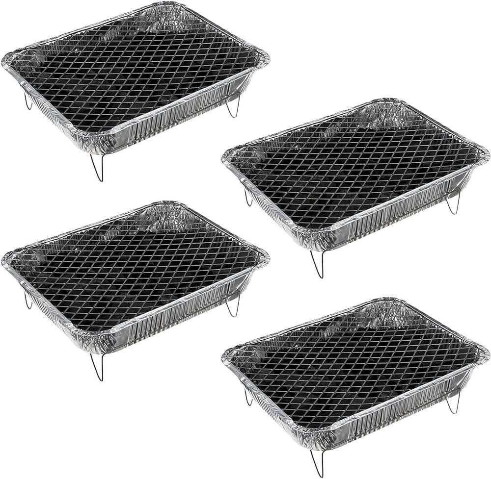 Disposable aluminum charcoal grills designed for convenient outdoor cooking experiences. Perfect for camping, picnics, and family gatherings.